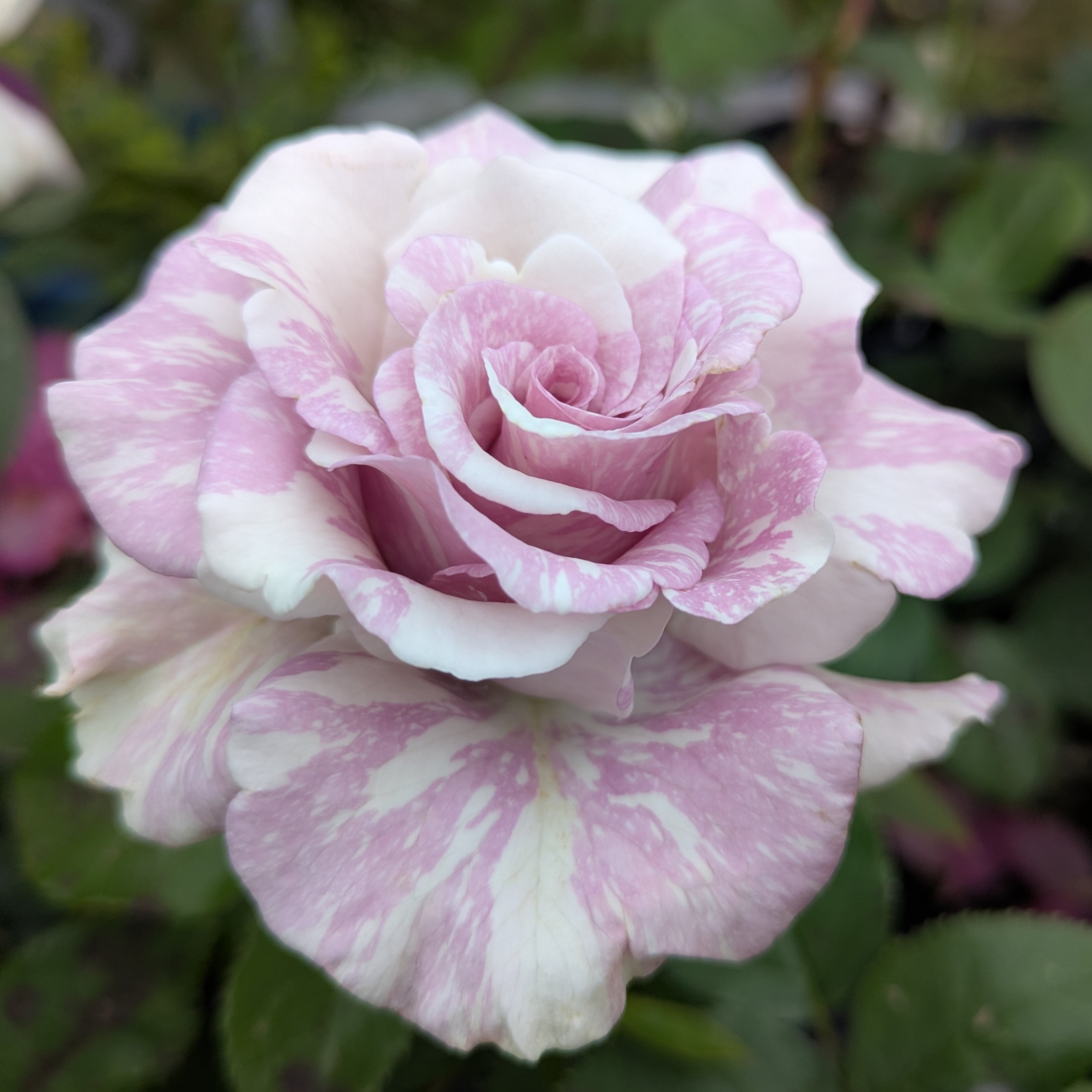 その名の通り淡いピンクパープルに白のストライプという何処かミステリアスの雰囲気のバラ。切り花種にしては比較的強健