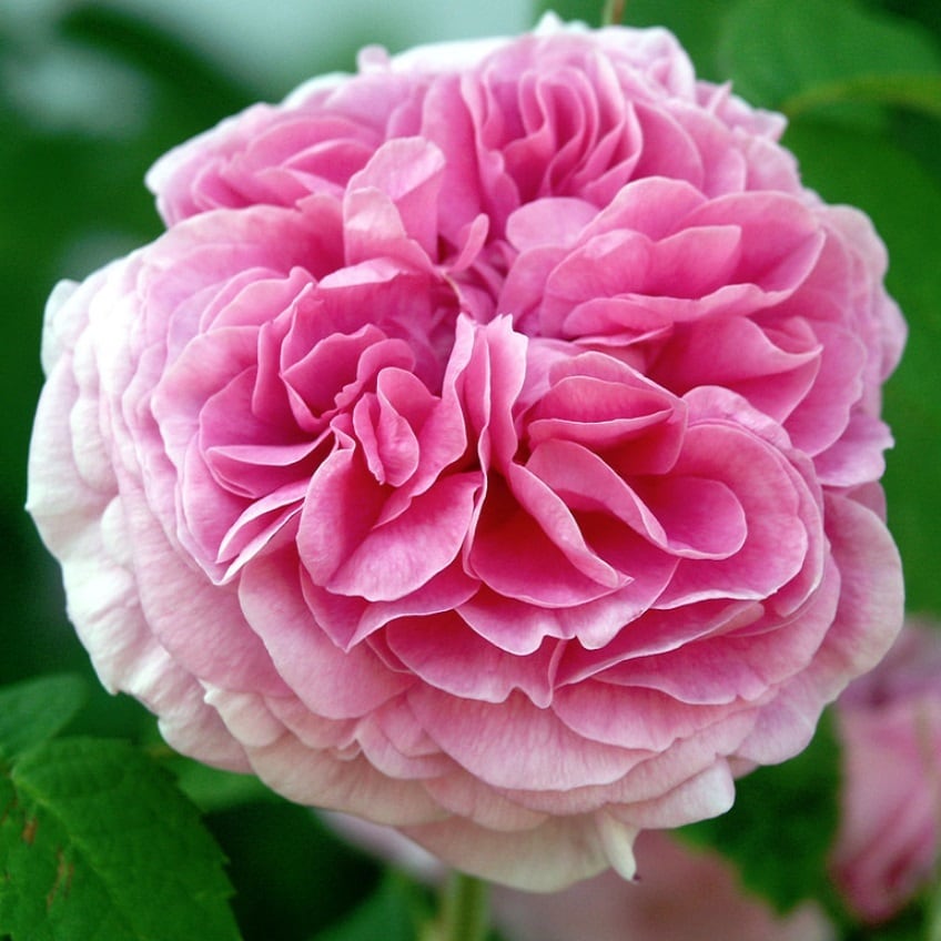 非常に古いポートランドローズで、花びらが中で波打つほどに多弁の花をつける。花の色はモーヴからラベンダーピンク。樹が大きくなる分幾分返り咲き性は穏やか。