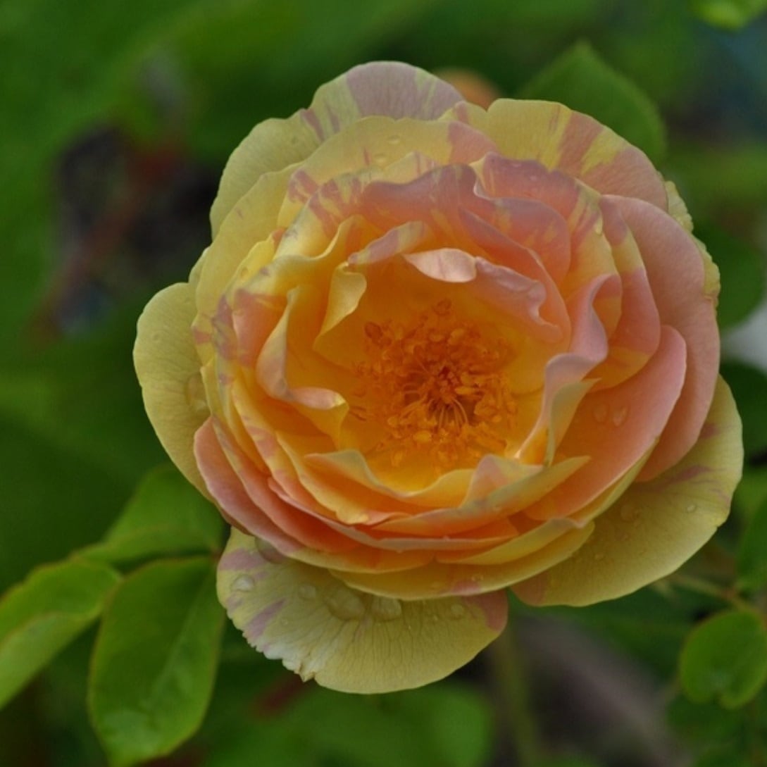 ストライプのミニバラと黄色いつるバラの名花グラハムトーマスの子孫。黄色ベースに淡いオレンジのストライプが入る。日本ではまだあまり知名度がないが欧米ではすでに強健さとその存在感で定評がある。