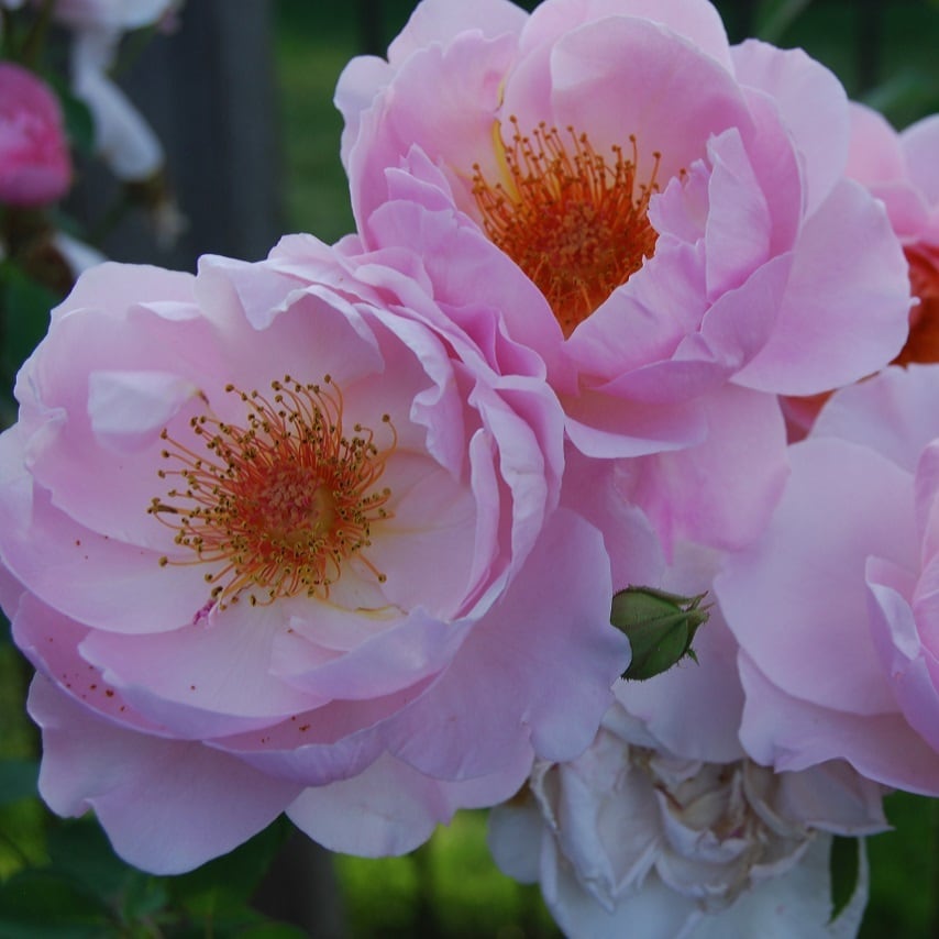 サーモンピンクの薄紅色、芍薬のような抱え咲きになり中心に蕊を覗かせる。強健で直立気味に伸びる。
