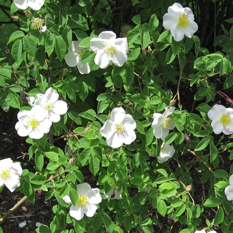 ロサガリカとロサ モスカータの自然交雑ではないかと考えられている。最も美しいバラの一つと言われている。花は一重で白にわずかなピンクのぼかしが入り、強い香りがある。『デュポンティー』というのはマルメゾン宮の庭園に、バラの育種づくりに尽力したした人物の名である。