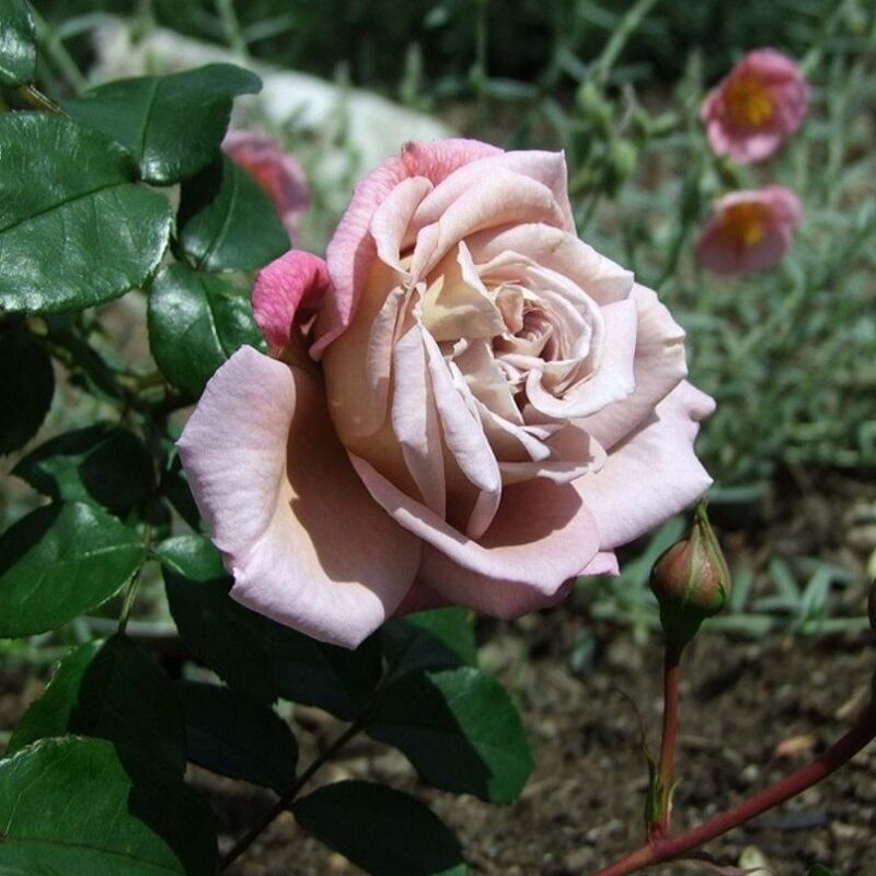 グレッチャーとはドイツ語で「氷河」の意味。1955年作出の古花ながら親のラベンダーピノキオ譲りの美しいニュアンスカラーが今なお人気が高い。この色味のバラの中では比較的強健。
