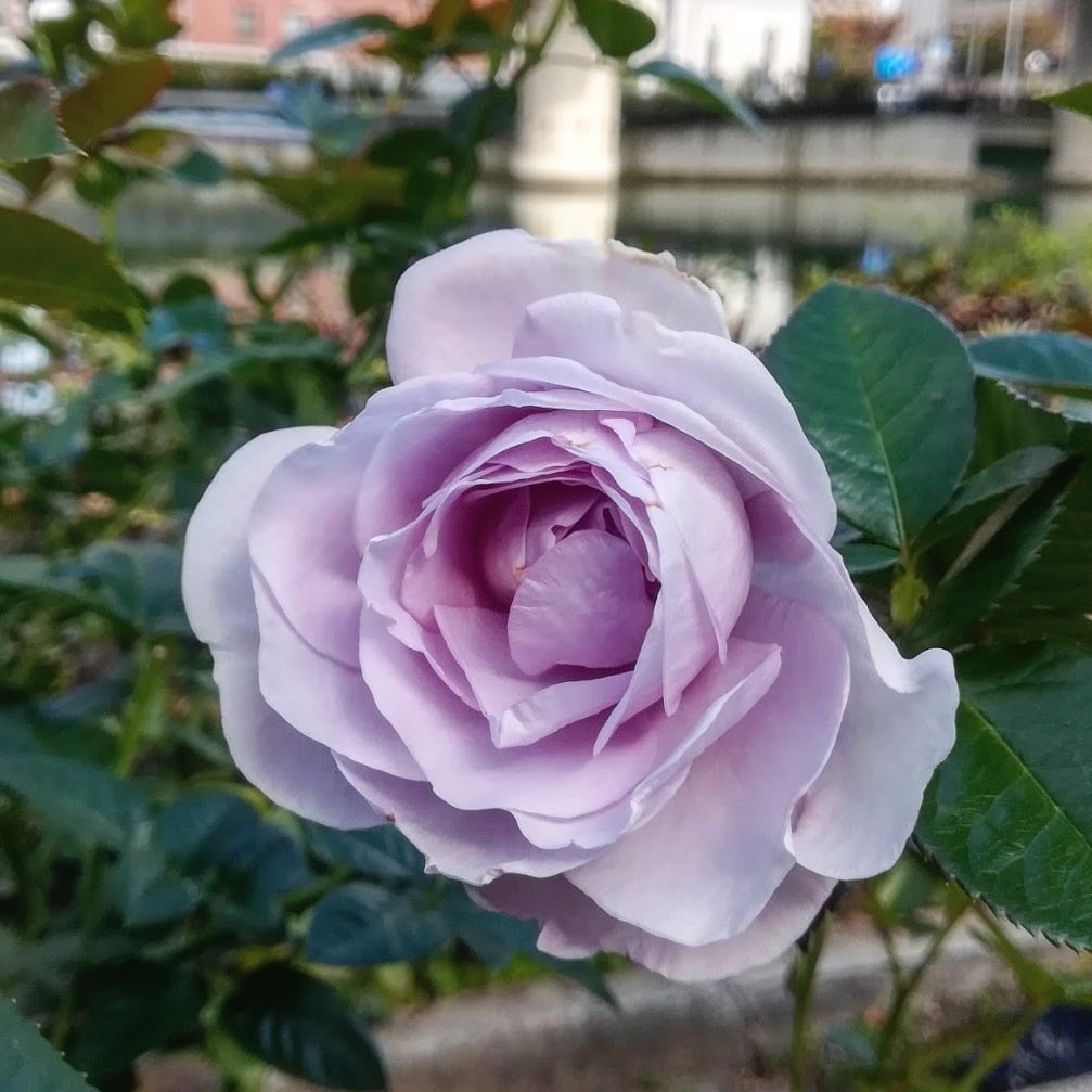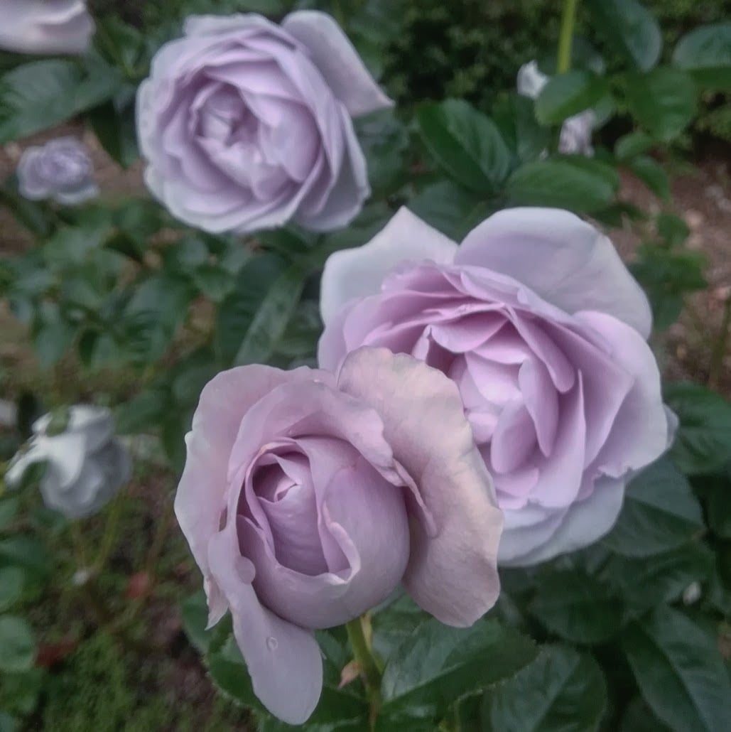 「蒼い入り江」の名の通り、フロリバンダ系では珍しい青紫の花。青系の品種の中では比較的丈夫な方ではあるものの病気には注意が必要。花持ちが良く棘も少ないので切り花にも向く。