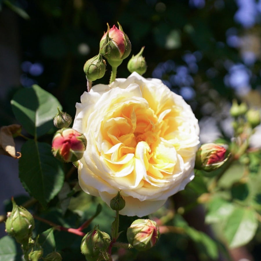 輝くような明るいイエロー、整った花がカタログ落ち後もなお人気の高い品種。よく伸びるのでつるバラとしても良い。