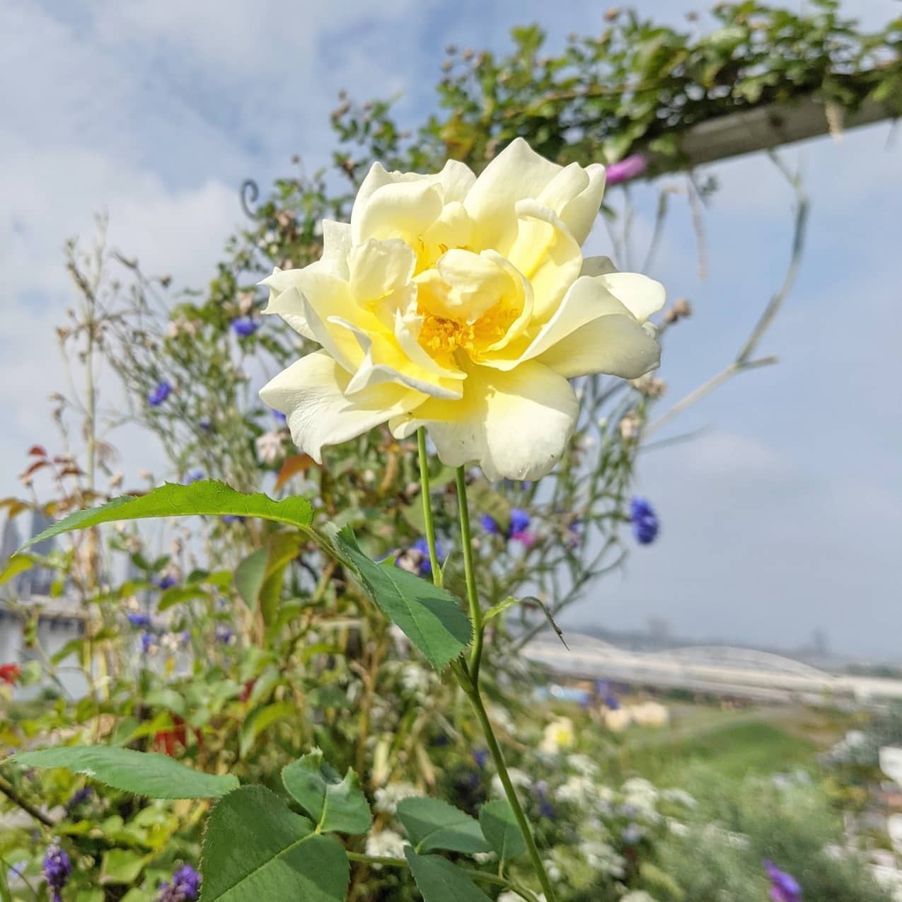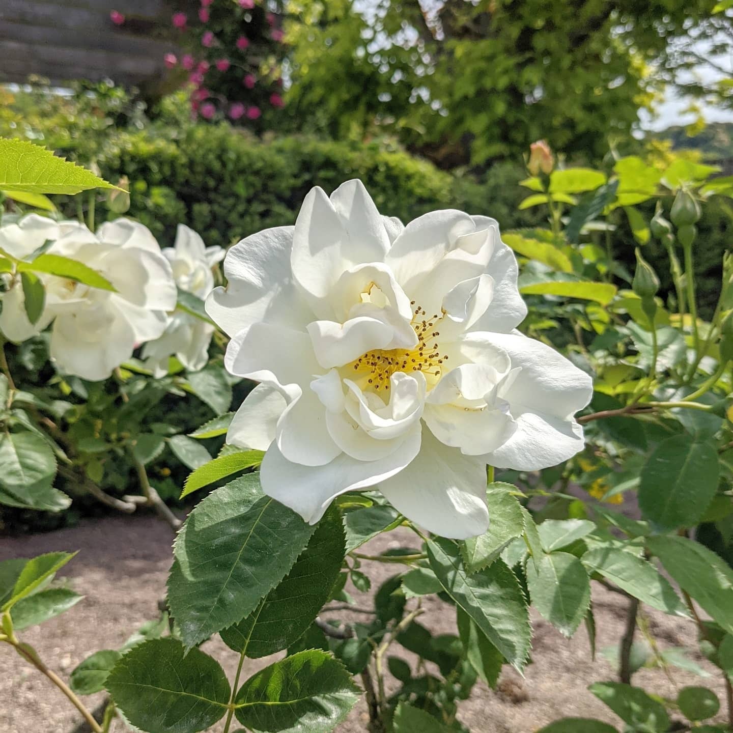 大きなバラを剪定しコンパクトに育てることも可能です。