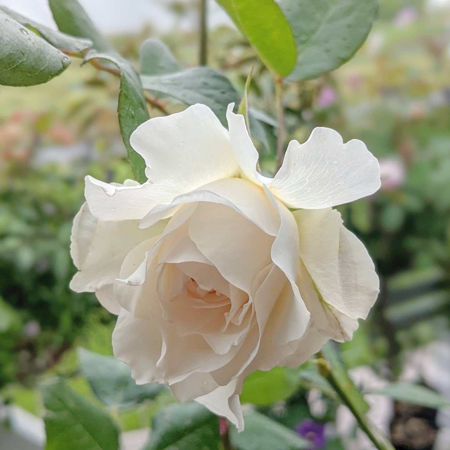 すらりと伸びた枝先に少しハイブリッド ティーのような雰囲気の花を咲かせる。枝葉や花の雰囲気がとても繊細で感じが良い。軽いティーの香り。
