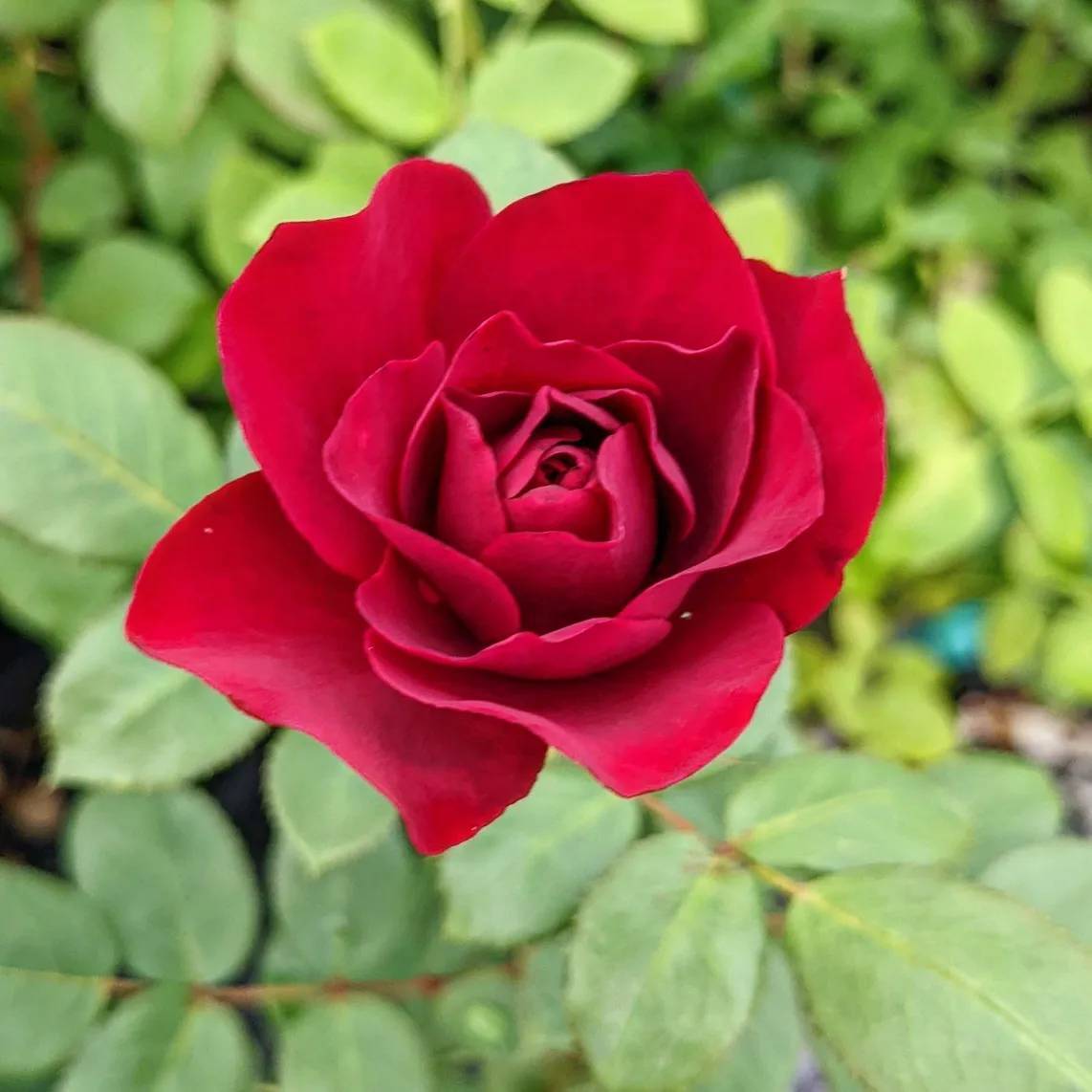 つややかな黒赤の花弁が美しい。片親にフロリバンダの名花アイスバーグをもち、どことなく雰囲気が似ている。強健。
