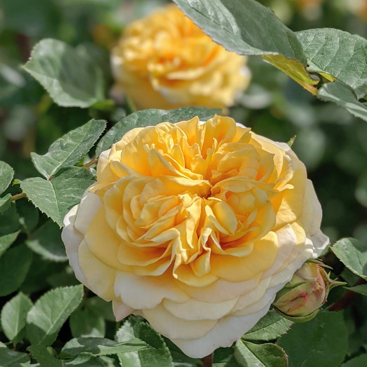チャールズ・オースチンノ枝変わり。中心はマスタードイエロー、外側になるにつれ淡くなる。フルーツの強い香り、旺盛に成長するが繰り返し花をつける。強健。