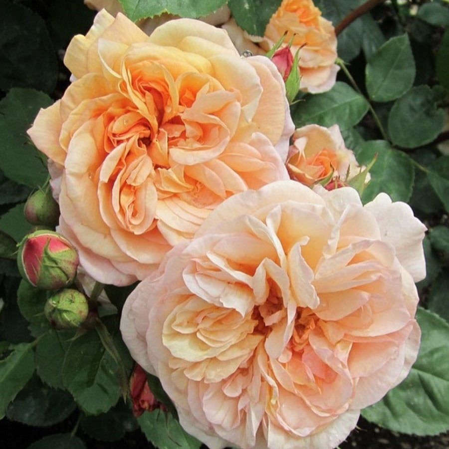 輝くようなオレンジ、強いフルーツの香りなど未だなお人気の高い品種。片親にアブラハムダーヴィーなどの親にもなっているハイブリットティーのアロハを持つ。