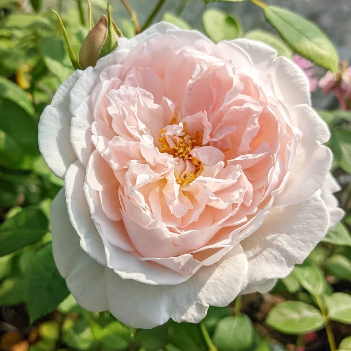 多くのERの交配親になっている品種の一つ。柔らかな色味のピンク、花芯が覗くさまが可愛らしい。