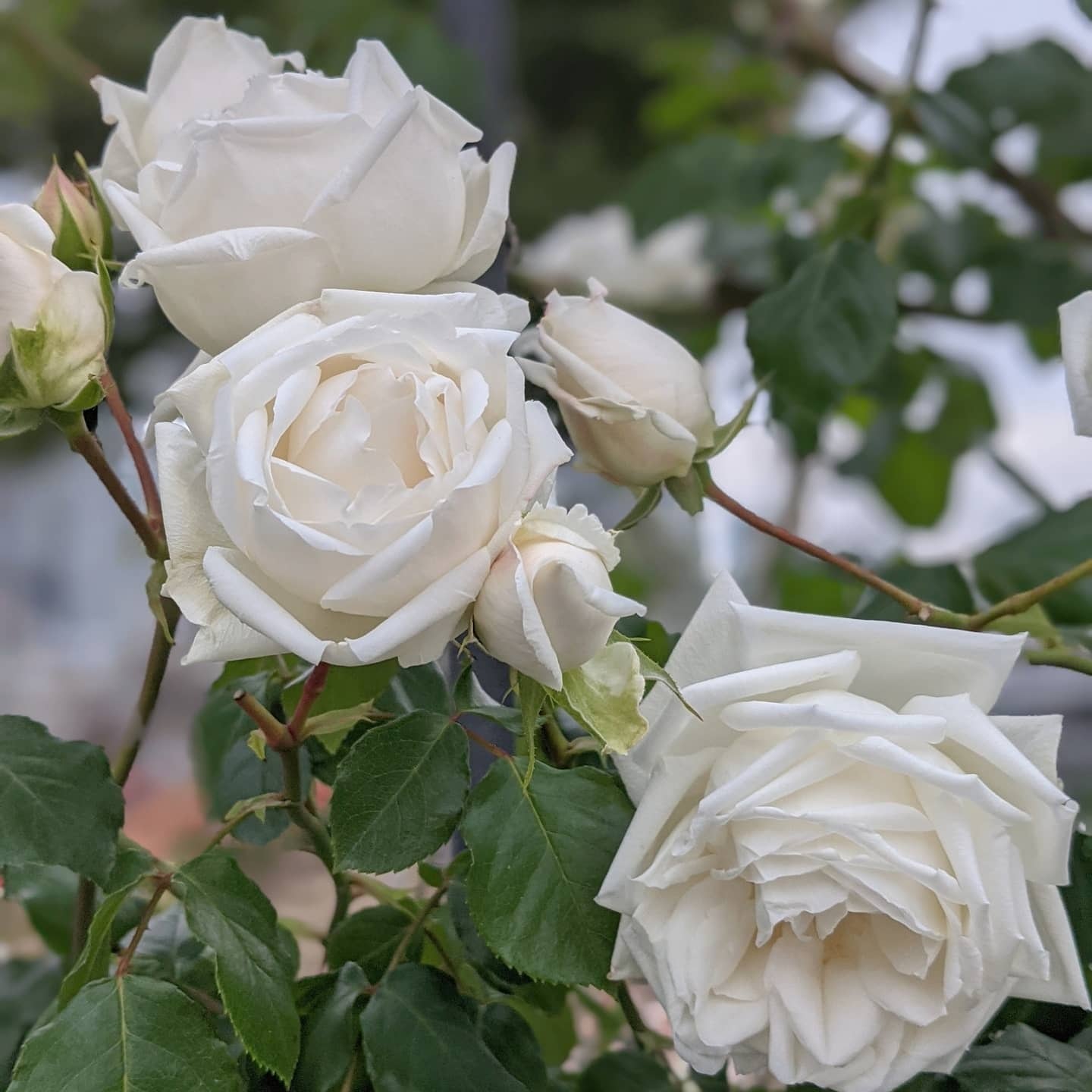 ニュードーンと香りの名花ネージュパルファンの実生種から生まれた品種。残念ながらネージュパルファンの上質な石鹸のような香りは受け継がれなかったが強健でよく返り咲くつるバラとして信頼性が高い。日陰ややせ地でも問題なく成長する。