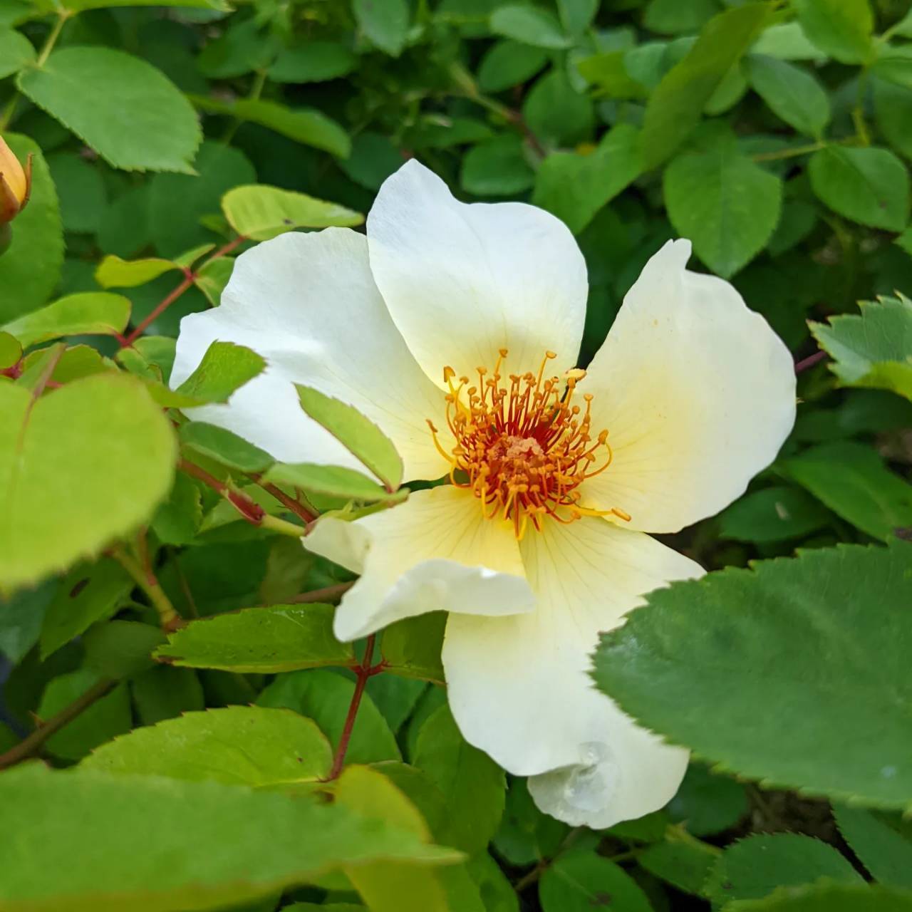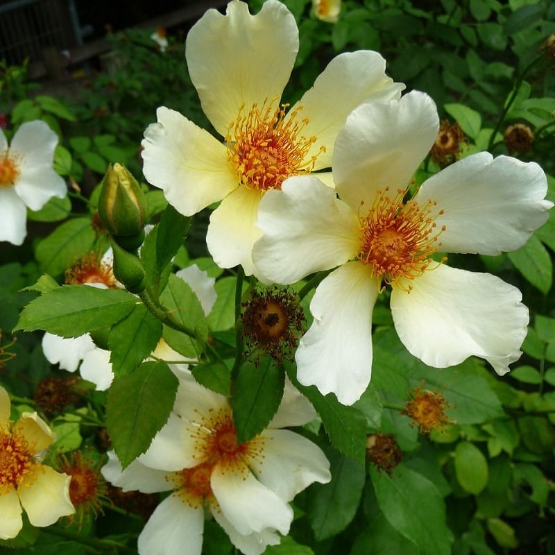 半八重のひらひらとした花からはレモンの香りを含む爽やかな香りを漂わせる。剪定を弱めに施すと小さめのつるバラにも向く。花つきが悪くなるが花がらを摘まなければ秋には大きめの実を楽しむことができる。