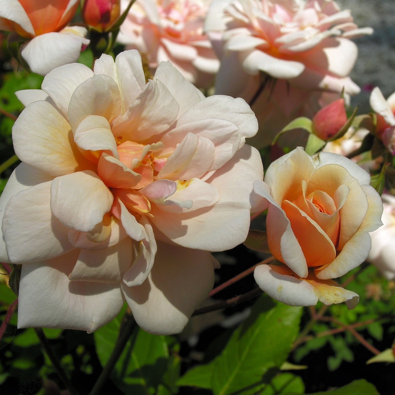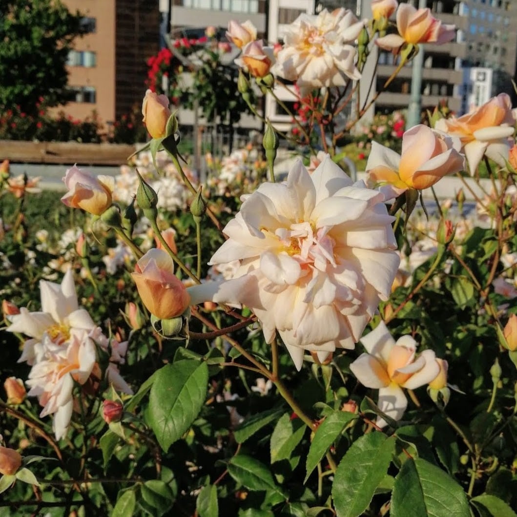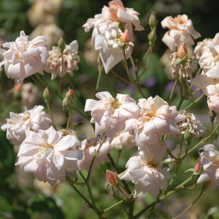 ペルル・ドールとは、フランス語で「黄金の真珠」という意味。ほんのり紅茶のような香りがあります。房咲きで小輪。切り詰めても腰の高さくらいにして庭植えにも出来る。