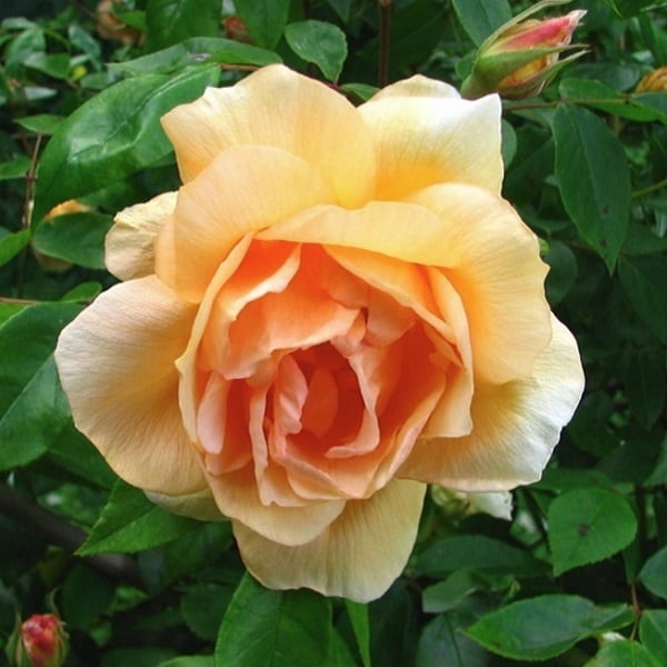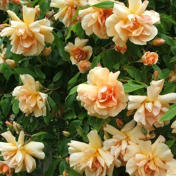 アプリコットのつるバラの代表品種。真冬を除き咲き続ける。病害虫にも強く、切り込んで50センチ位に短くしても良い。香りは軽いティー香。紅茶の茶葉のような軽やかな香り、少しミントのようなグリーンノートもまじる。