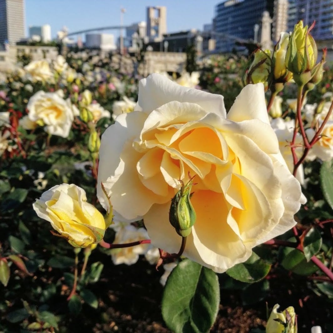 大きなバラを剪定しコンパクトに育てることも可能です。