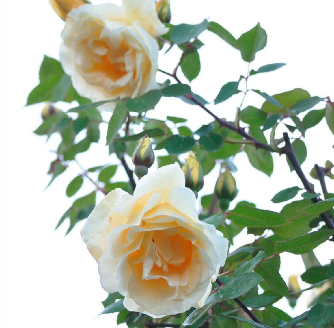 ティーローズの代表的な品種。和名:金華山 温かみのある山吹色の花からは紅茶のような香り(ティー香)がする。華奢な樹形だが強健、早春から晩秋まで絶え間なく花が咲く。