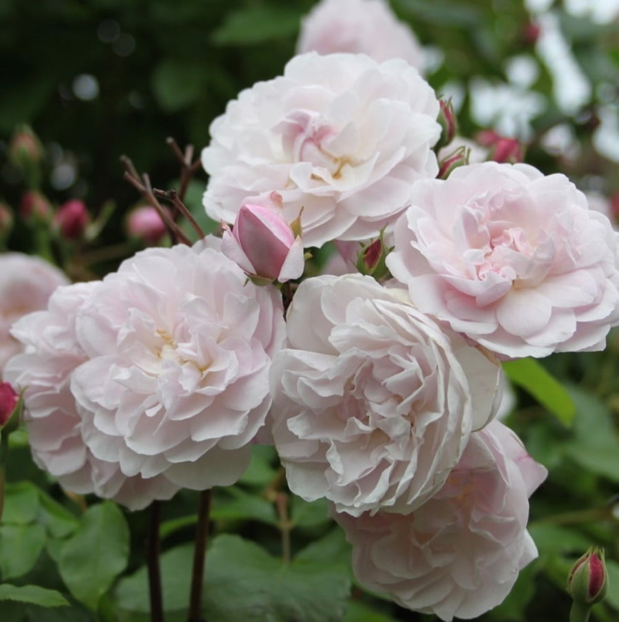 小輪房咲き、ブラッシュピンクの花が可愛らしい。ムスク香と言われる濃厚な香りがある。つるバラですが切り込みコンパクトにも出来る。強健