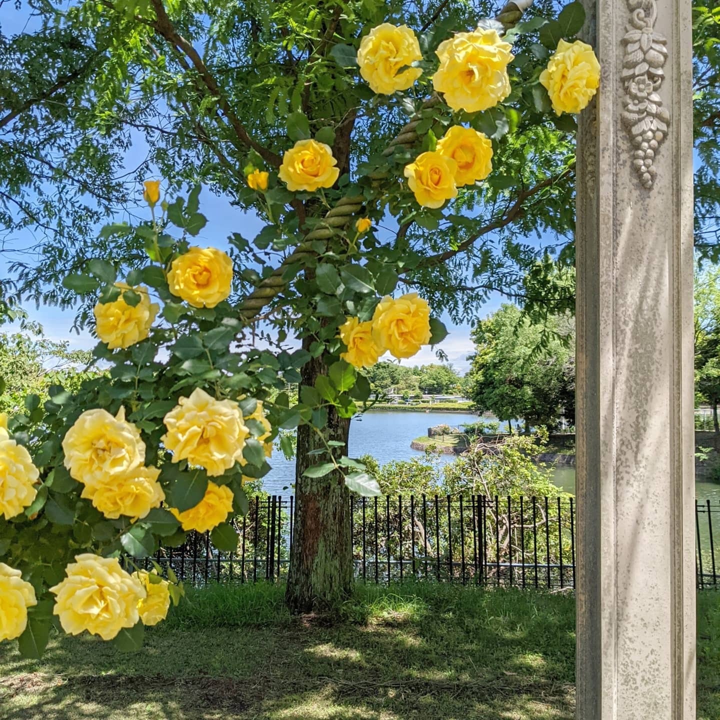 大きなバラを剪定しコンパクトに育てることも可能です。
