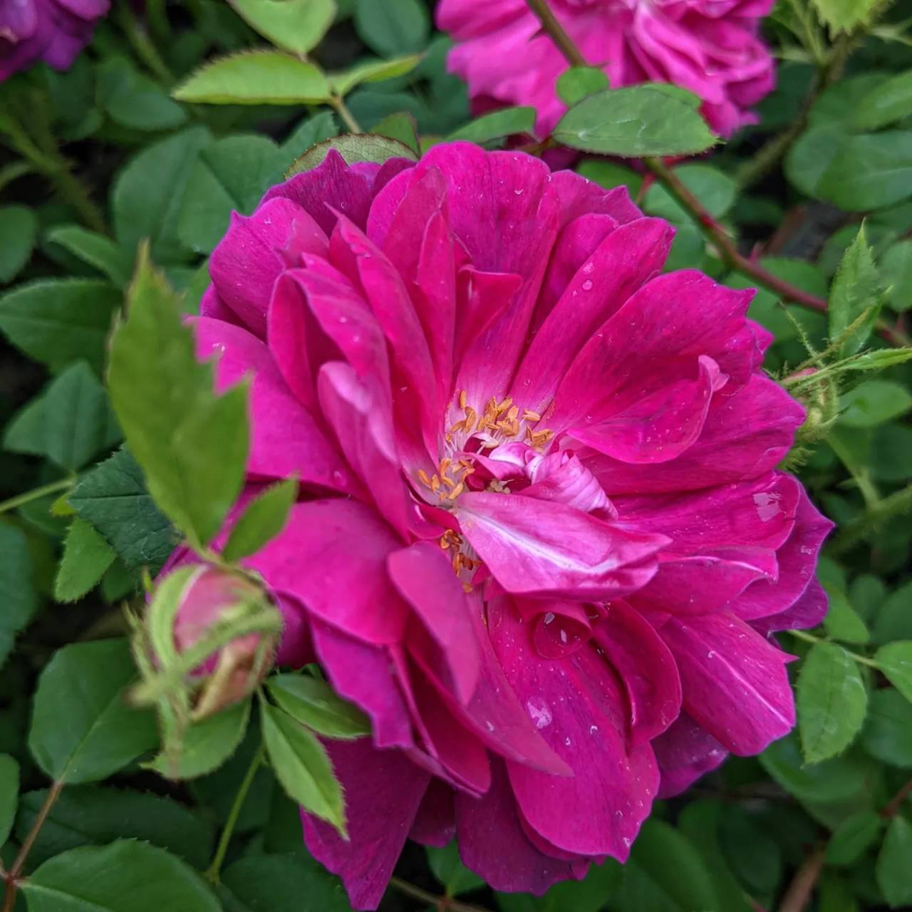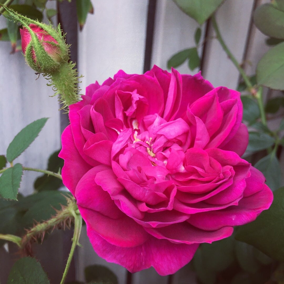 後期のモスローズ。ベルベットのような花びら、四季咲き。樹が成熟するまでは気難しい部分もあるがきれいに咲きそろったときの花の美しさは素晴らしい。