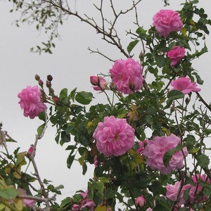 名前はスコットランドの方言で「ラベンダー色のお嬢さん」という意味。半横張での樹形で成長は旺盛。春は株を覆うほど花が咲く。少ないもののポツポツと返り咲く。