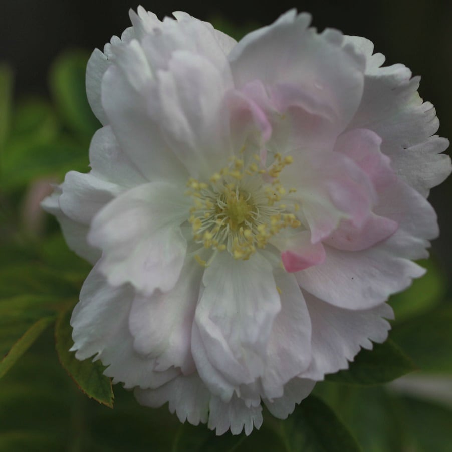 半八重,薄ピンク。花弁に切込みがありカーネーションのような花。枝は真っすぐ伸び直立する。良香