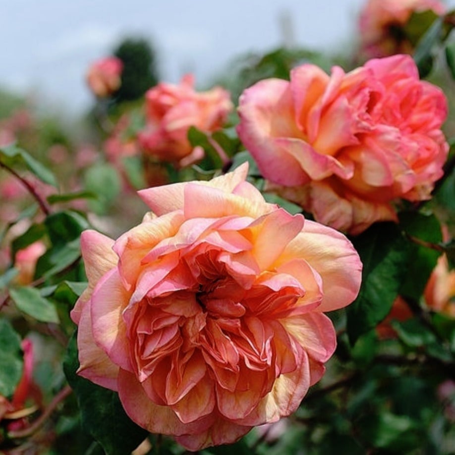 黄、オレンジ、ピンクサーモンの混じり合う絶妙な色合い。独特の浅いカップ咲き。香りはほのかなティー香がある。