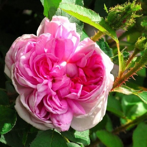 中輪、中心が濃いピンク、花びらの端は薄いピンク。奔放に枝を伸ばし強健に育つ。強意香りがある。