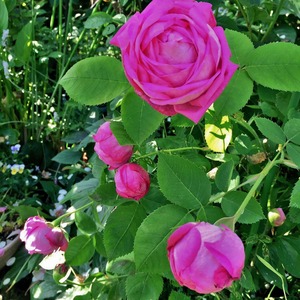 芍薬のような香り高い12〜13センチの大輪、春と秋一回ずつきっちりと返り咲く。ラ・レーヌというのは「女王」という意味。切り込んで直立させたほうが花つきが良い。