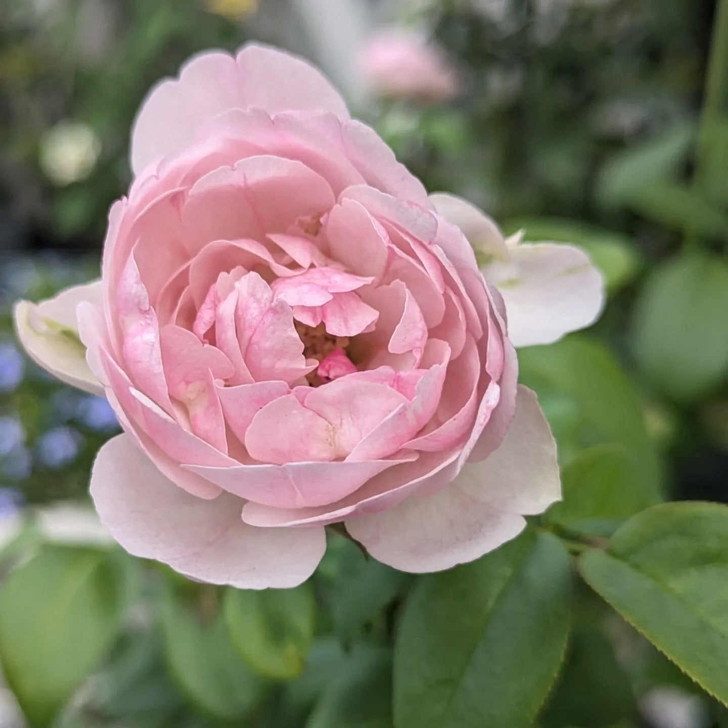 レオナルドダヴィンチの枝変わりで花は若干青みを帯びる薄いピンク。強健で良く咲く。