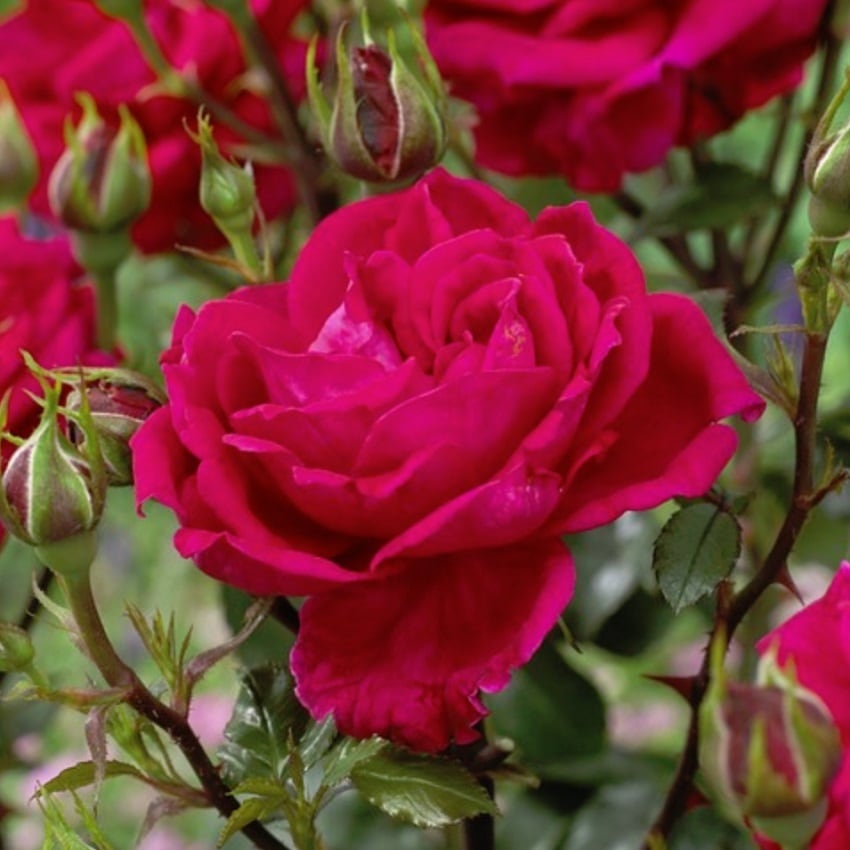 つるバラの銘花ニュードーンの子孫。作出国のフランスでは「エテンダール」の名で知られる。親に似た樹形で強健に成長する。