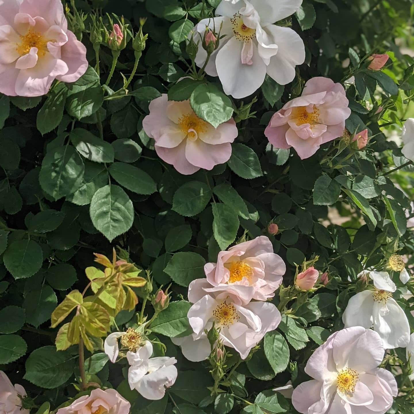 HTの銘花マダム・バタフライとアルバローズの交配により生まれた品種。香り高く大輪の花を多数咲かせる。枝葉も美しく、秋のヒップも楽しい。