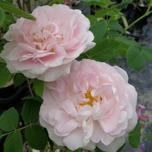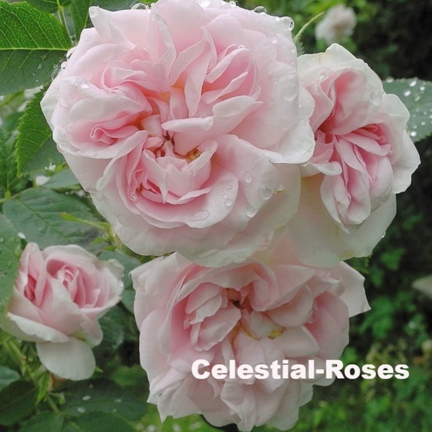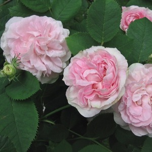 中輪のロゼット咲き。「乙女のは地恥じらい」の名の通りとても清楚なイメージのバラ。樹は大柄に成長する。強健