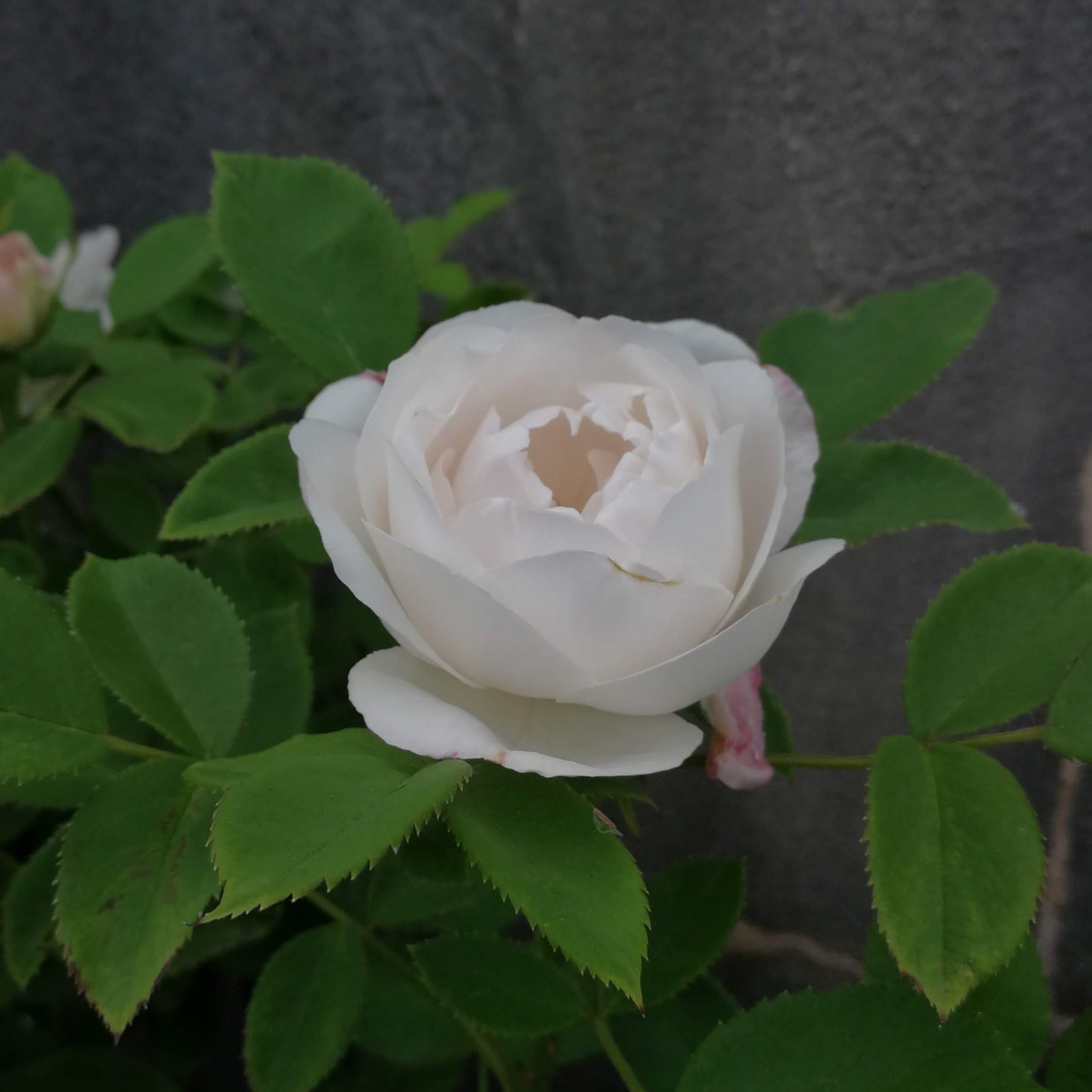ブッシュに近い直立した樹形。整ったカップ咲き白からソフトピンク。咲きそろったときの美しさは他のバラにはない雰囲気がある。