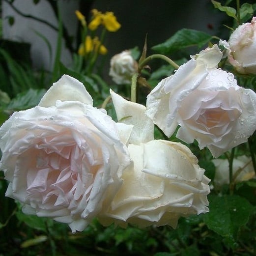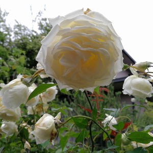 薄い花弁が幾重にも重なり、うつむき気味に咲く様はとても趣がある。クリーム白にほんのりピンクが乗る。良好