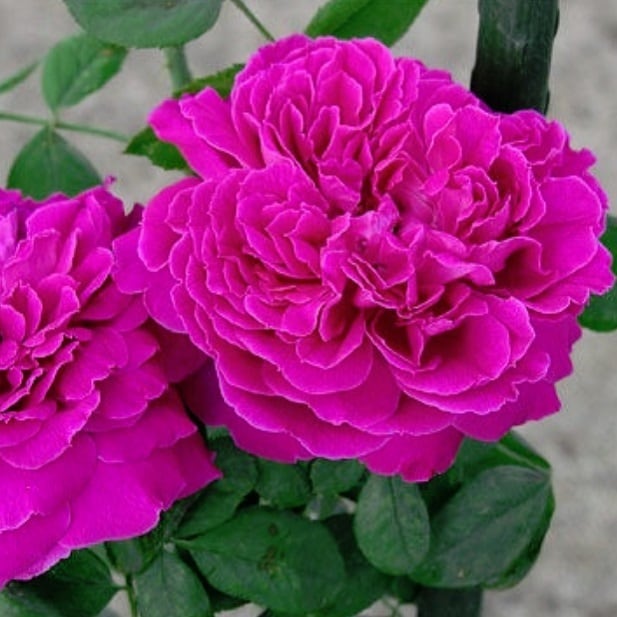 深紅色、花弁も多いクォーターロゼット咲き。強いダマスクの香りがある。春から秋にかけてコンスタントに咲き続ける。強香