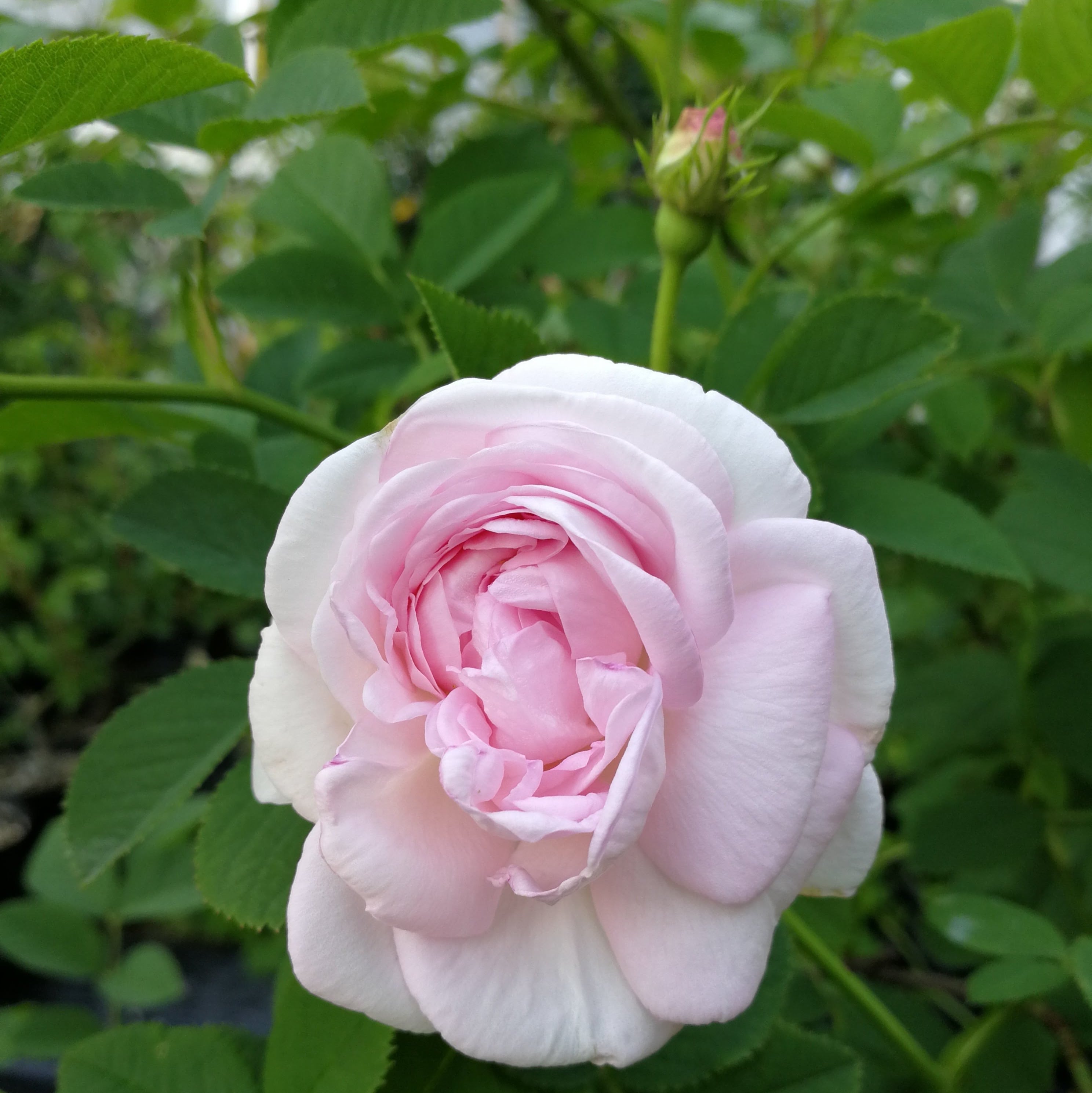 強香、淡いピンク、中心が濃くなるりグリーンアイが覗く。トゲは少ないく直立気味によく伸びる。名前はギリシャ神話に出てくる女神の名に因む。