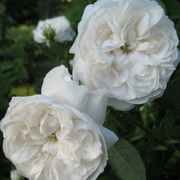 白色の綿菓子のような大きな花がたくさん咲く。香りも非常に強い。枝はよく伸びるが強健でステムも短くつるバラとしてもお薦め。