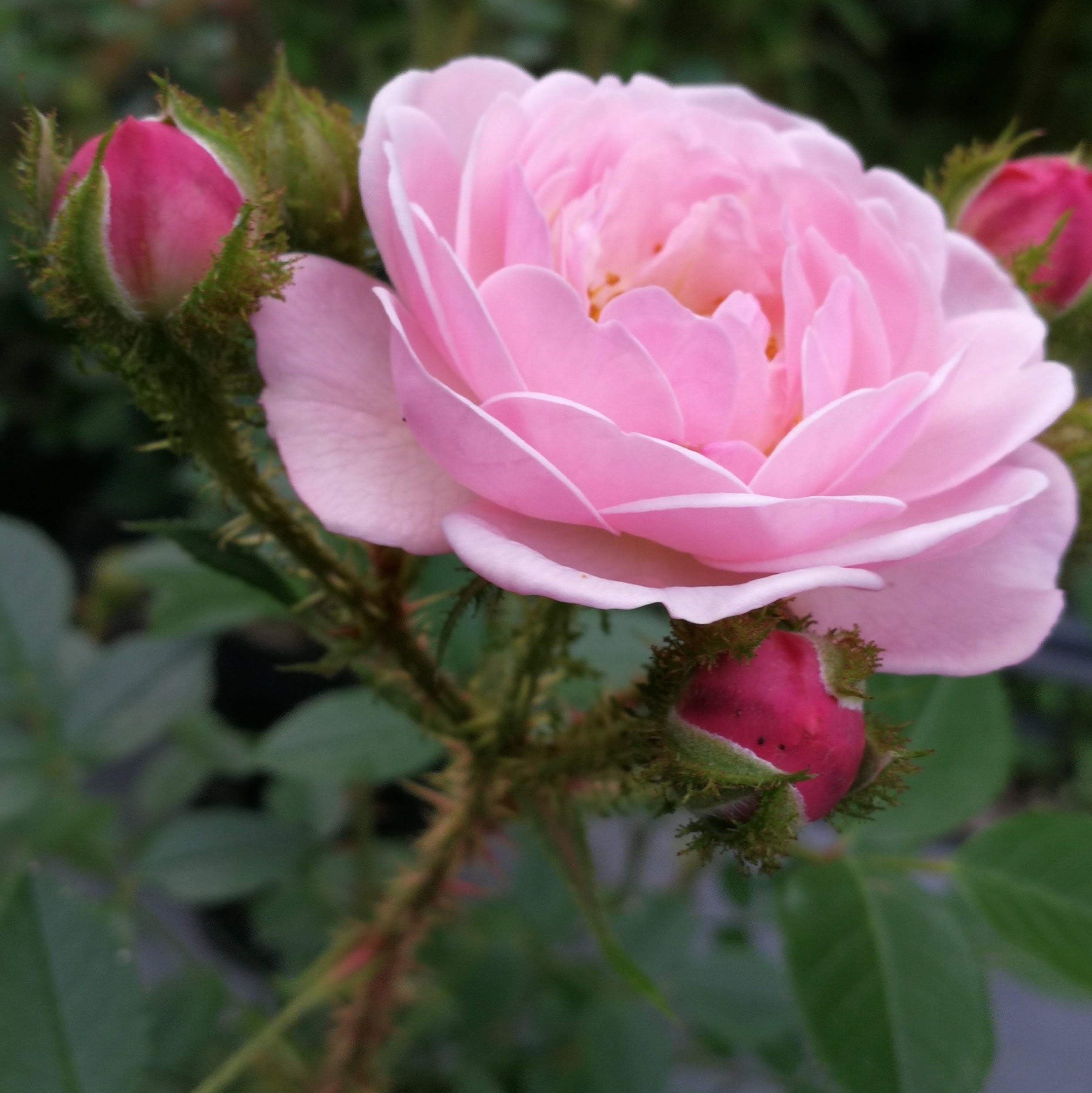 モスローズとの交配品種。花の香りはあまり感じられないが腺毛はしっかりありバルサム香が楽しめる。強健。