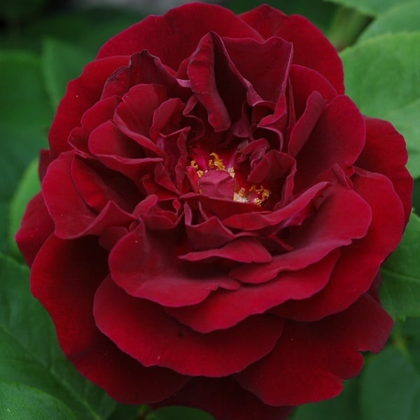 別名:崑崙(こんろん)八重、赤黒の大輪カップ咲き。樹は直立して成長し、花の重みで枝が垂れるさまが趣深い。強健種