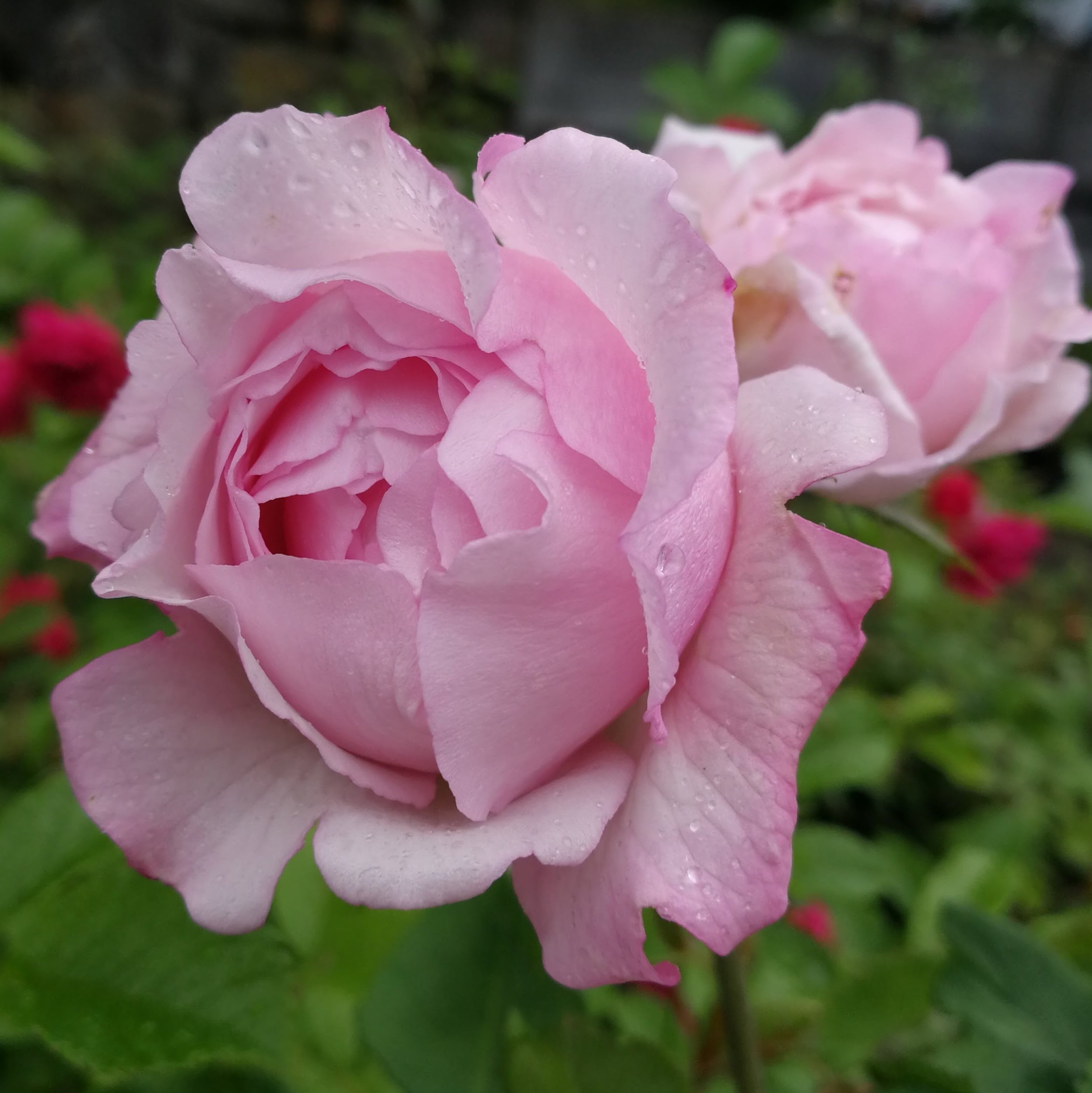 ピンク〜うすピンク。花弁の端に濃い色が乗る。トゲは少ない。ハイブリッド・パーペチュアルの中では豪華というより清楚なイメージ。強香。