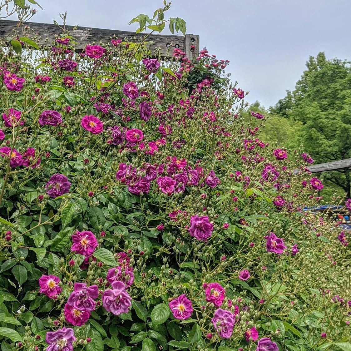 すみれ色の銘花、ファイルヒェンブラウを親に持つつるバラ。樹の性質や花はほぼ同じだが繰り返し咲きの性質を持つ。強健