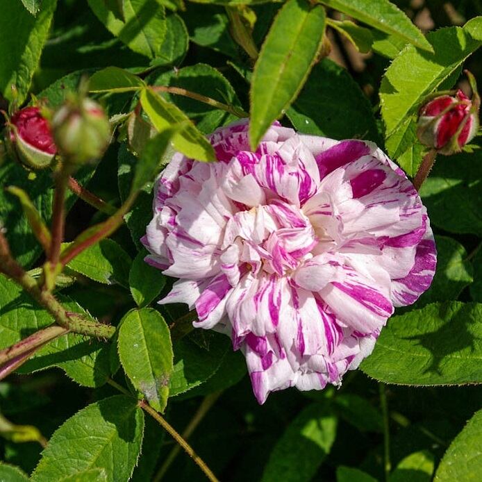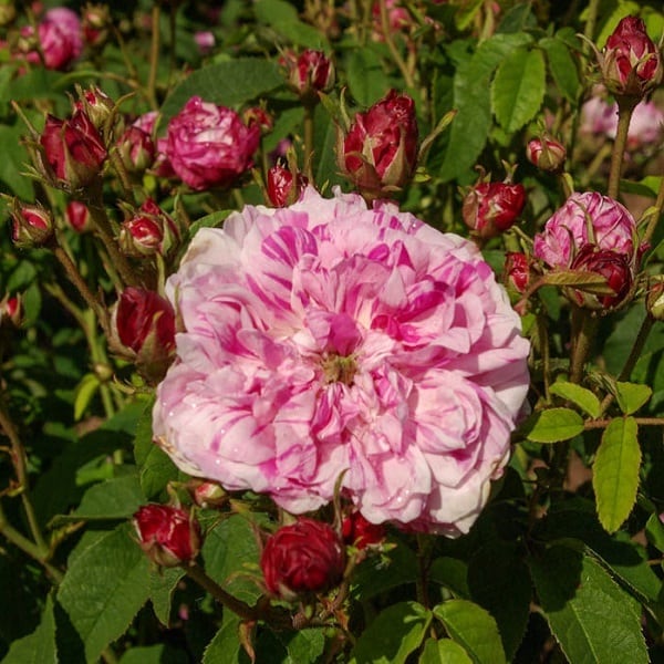 淡いピンクと濃ピンクのストライプ,半八重咲き,強健