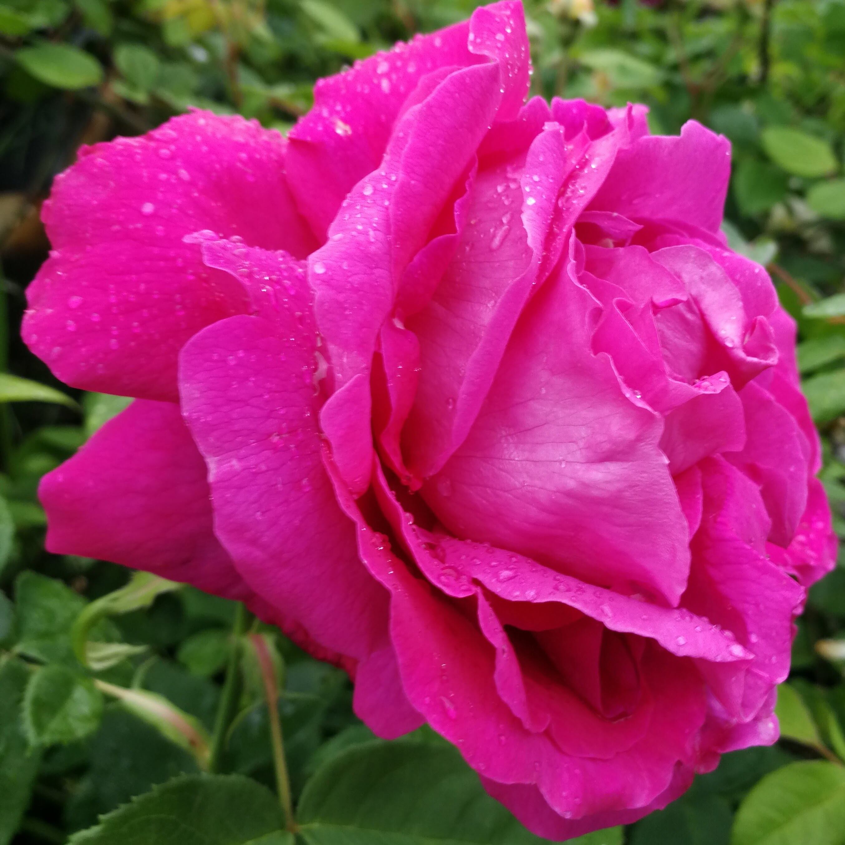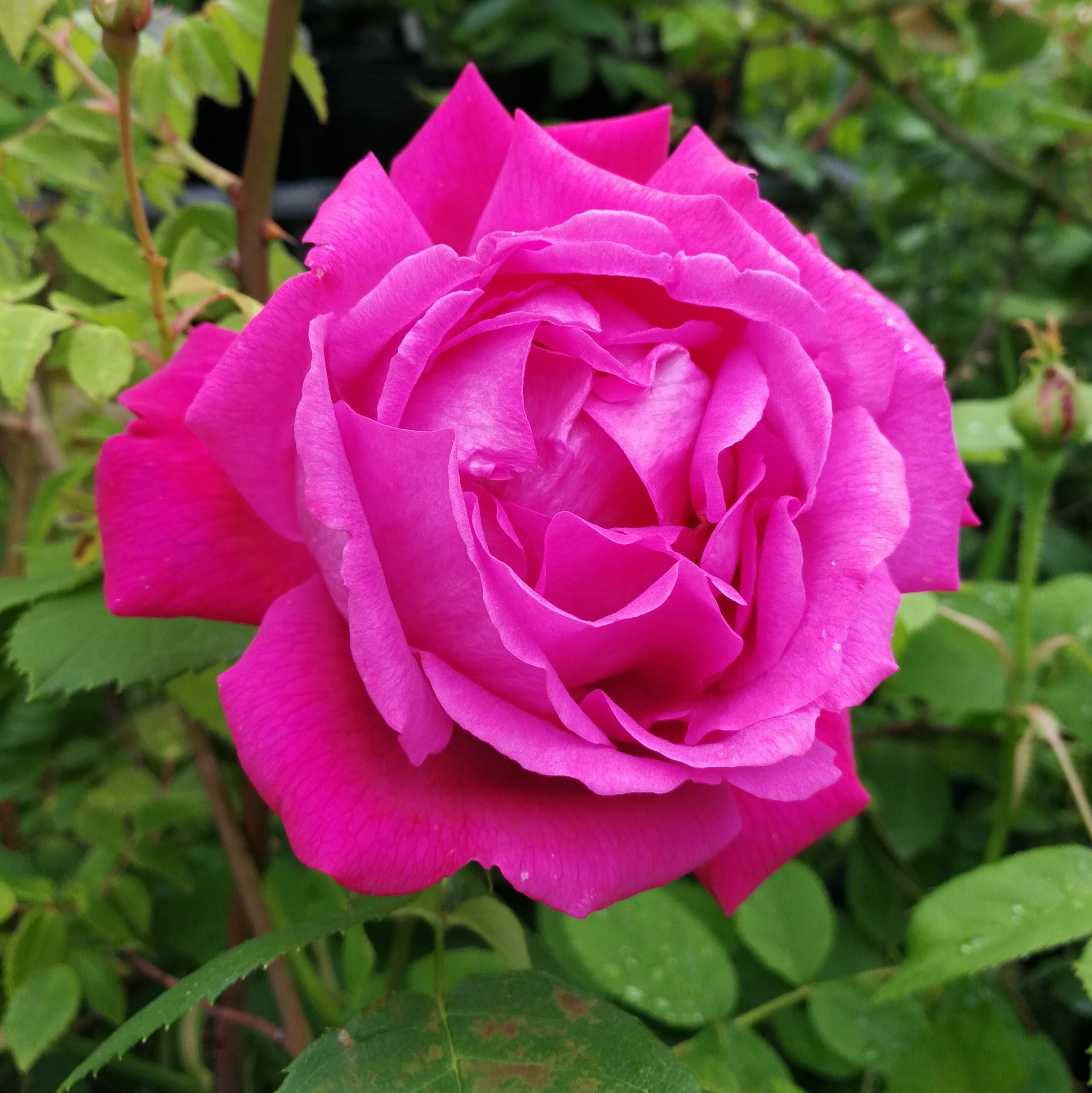 濃い紫がかったピンクの大輪花。親のポールネイロンほどではないがよく返り咲く。香りも受け継いでおり独特の甘い香りがある。強健