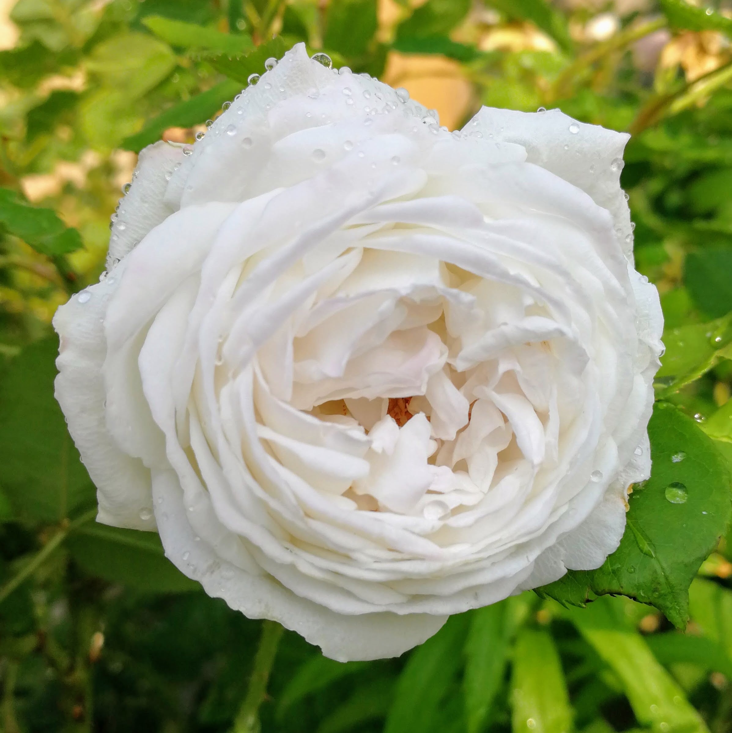 純白のカップ〜ロゼット咲き。半横張りに樹は旺盛に成長する。強香