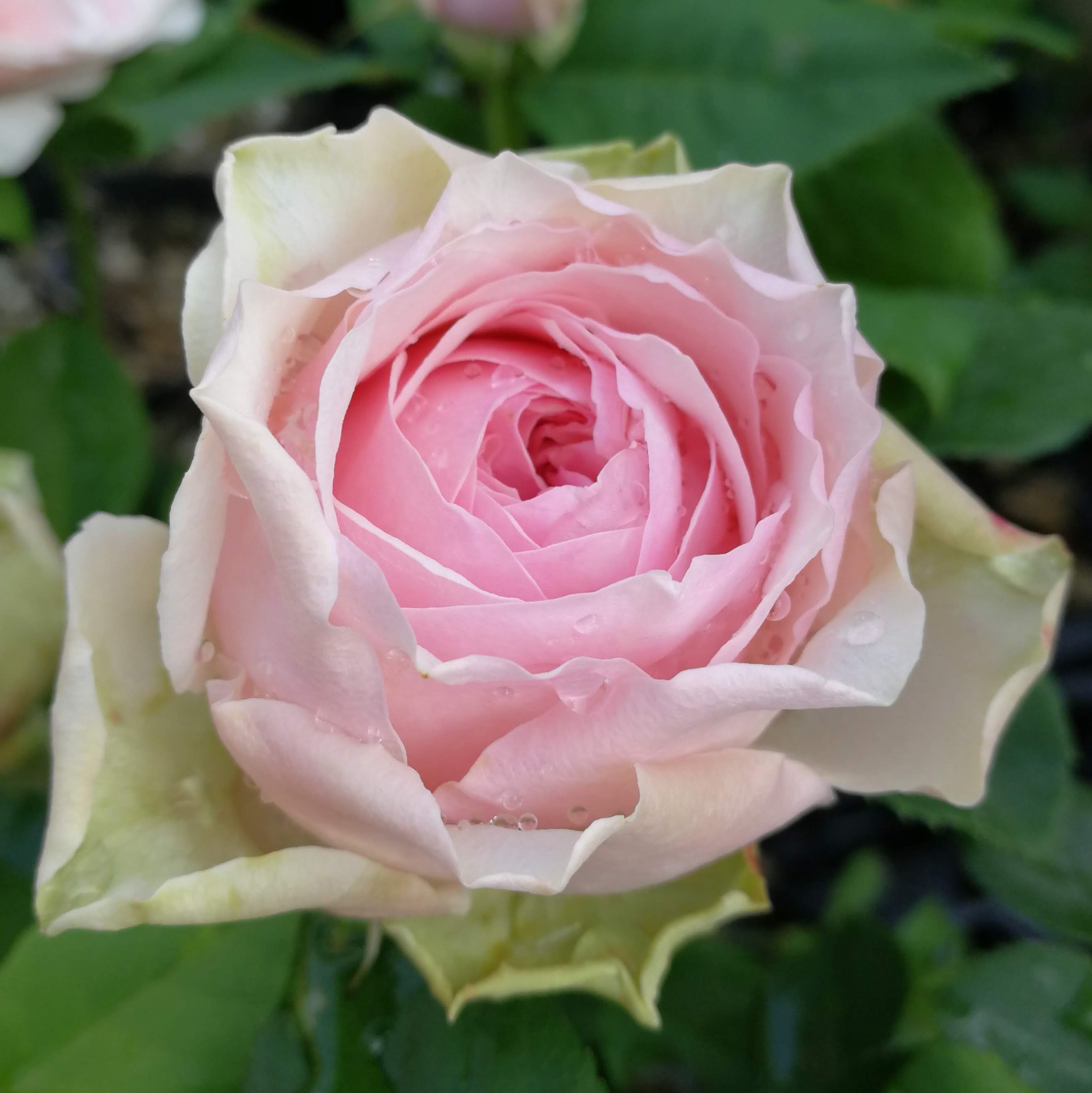 ブラッシュピンク〜アプリコット。蕾には緑が乗る。ティーとフルーツの濃厚な香り。1986年作出の古いイングリッシュローズ。