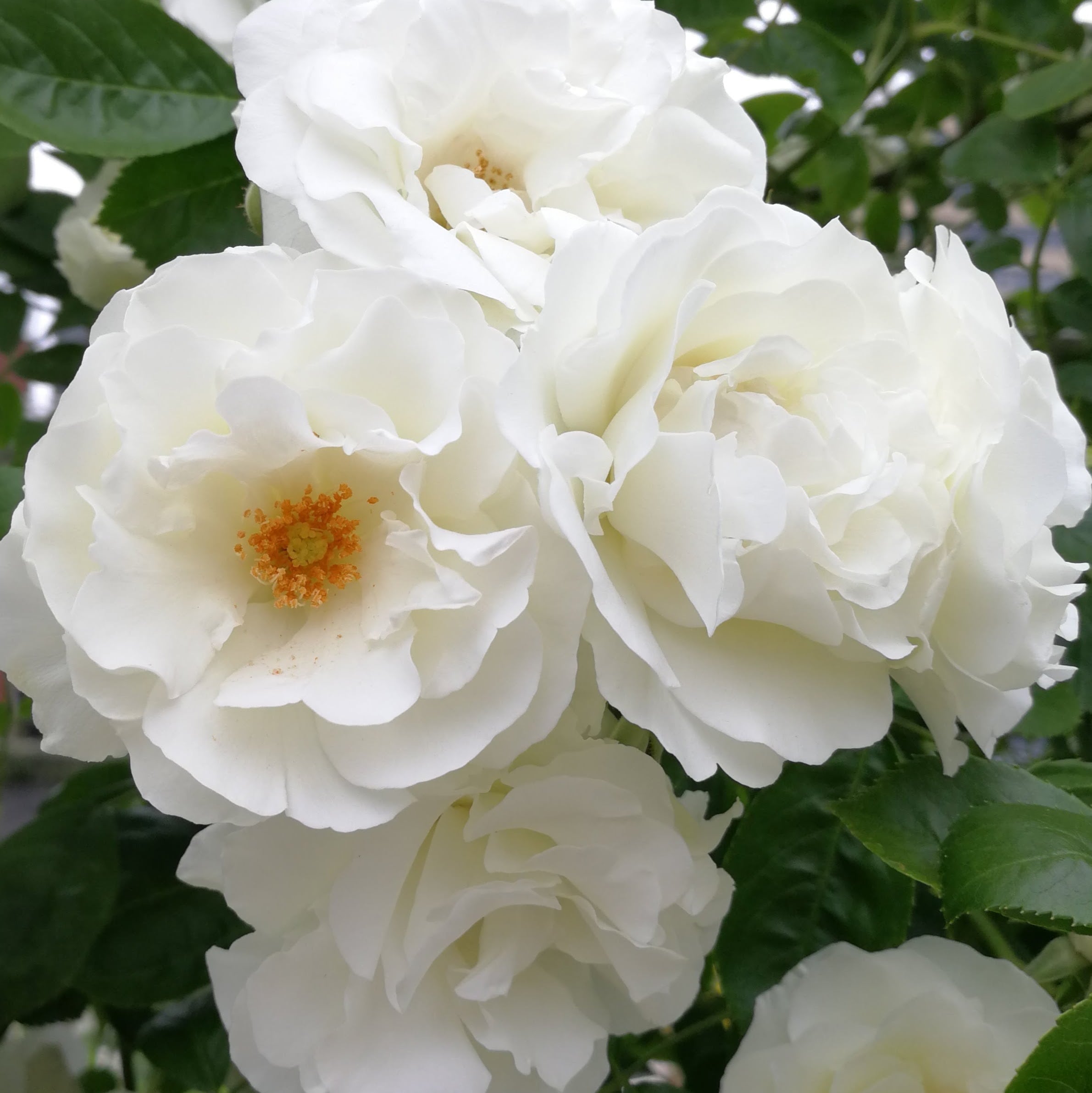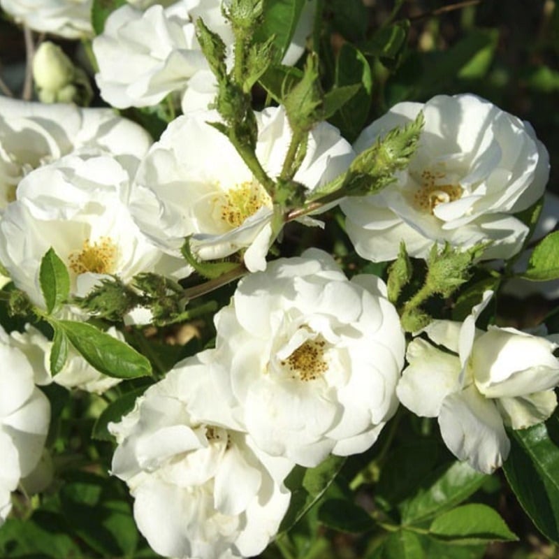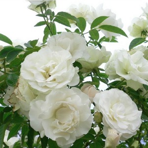 同名のつる性品種が伸びずに四季咲き性を持つようになったもの。花付きがよく独特の形の葉は少し肌にや病気に弱いが樹自体は強健。
