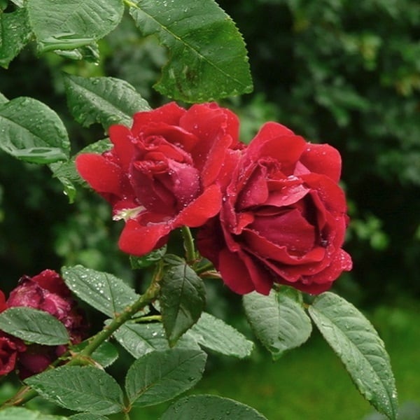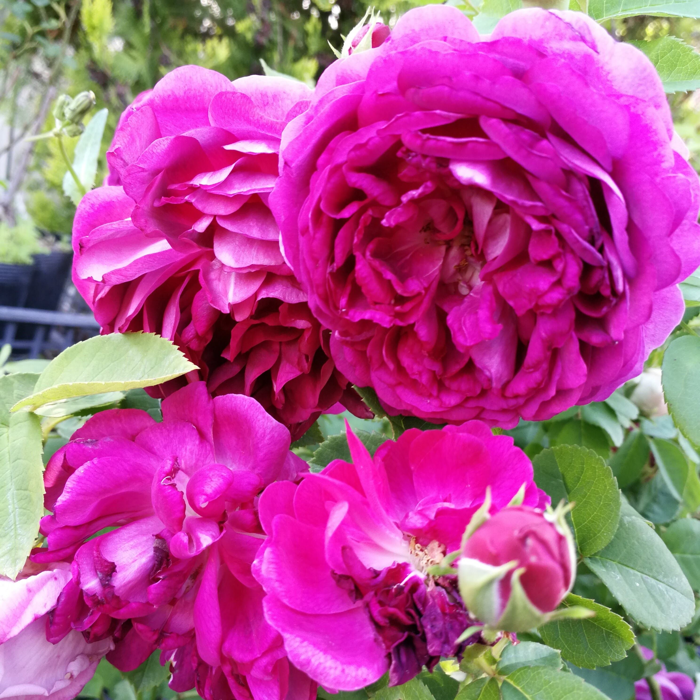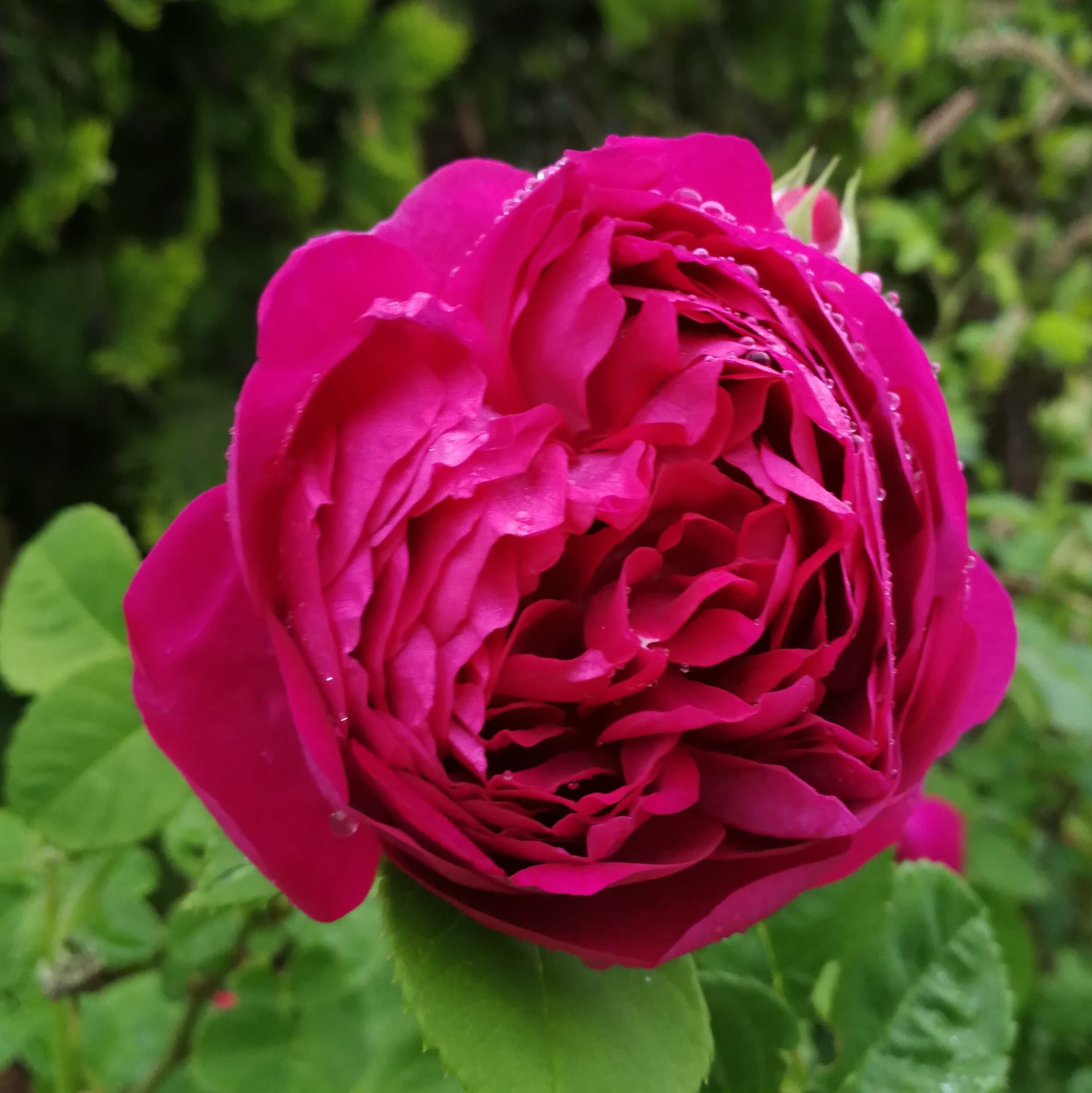 この系統としては少し重ねが薄い大輪花。赤黒く香り高い花を咲かせる。秋にも返り咲きがある。