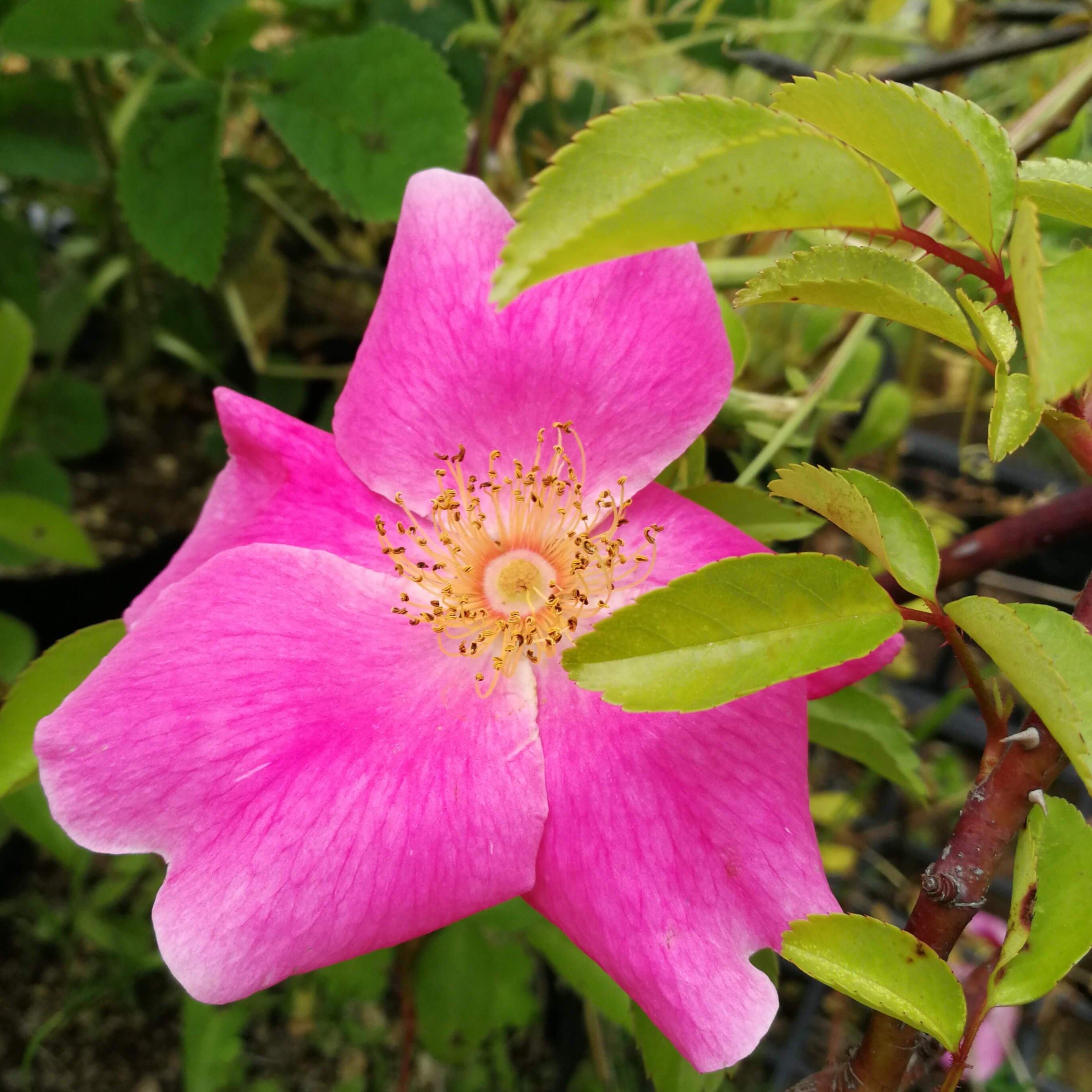 鳩谷薔薇 淡いピンク色、ナニワイバラの変種と言われているが樹が成熟すると極稀に返り咲きすることもある。強健。トゲに注意。