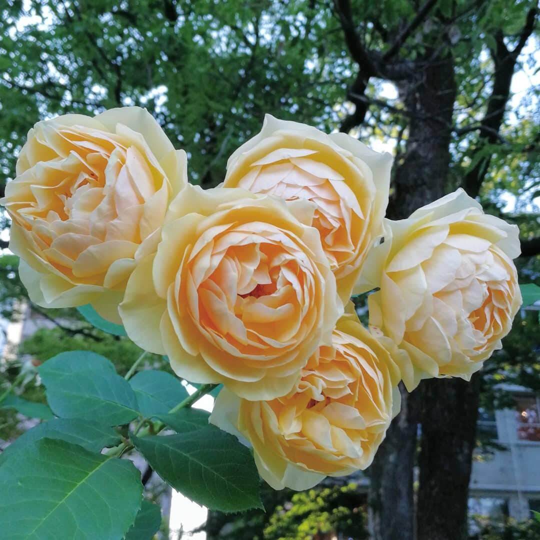初期のイングリッシュローズで明るい山吹色、可愛らしいカップ咲きなど今でも絶大な人気がある。秋の花は少ないが一輪の凄みを感じさせてくれる良さがある。良香